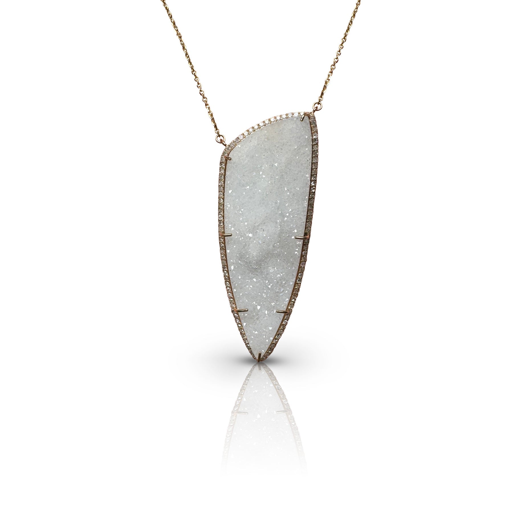 Exquisite 14k Gold Necklace with Diamond and Druzy