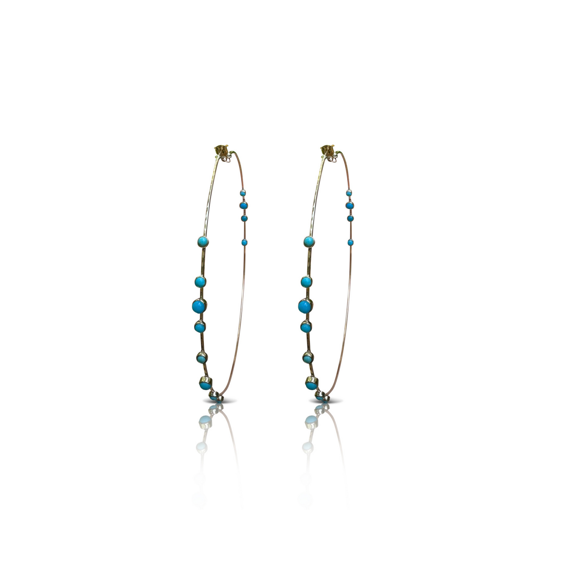 14k Turquoise Large Hammered Wire Hoops