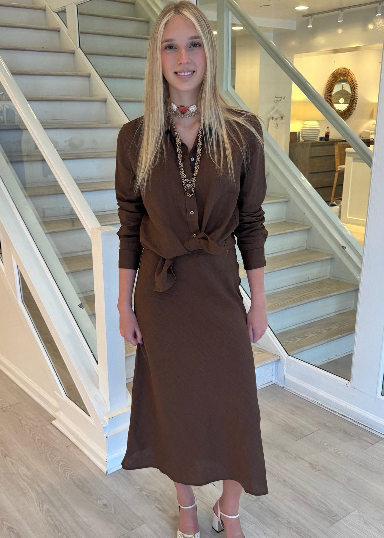 LINEN MAXI SKIRT - CHOCOLATE